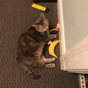 4/1/18: The transformation of Penny’s personality has been so much fun to watch. I can’t believe she’s the same cat who wouldn’t come out from under the bed, though my instinct when I met her was that she was a sweetheart. We love her so much!