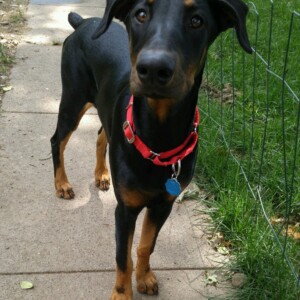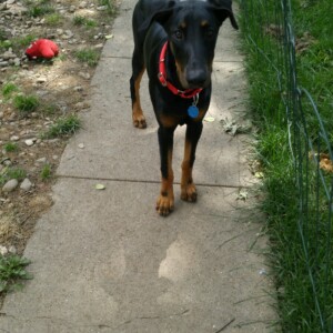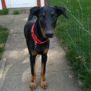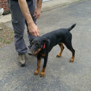 Look at this cutie little dobie girl! Sadie is 6 months old and loves everyone she meets. Typical dobie, wants to be with her people all the time. You can hardly take a step without her being right there.
