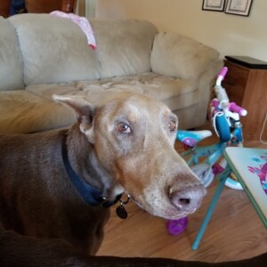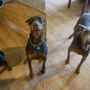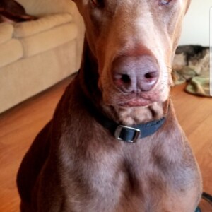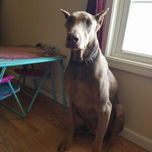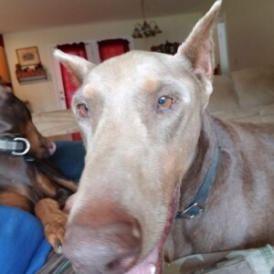 Hi everyone! I’m Chief! I am one handsome fawn Doberboy who hasn’t been shown the love that I so deserve! See, I am 4 years old, and I have lived the majority of my short life outside. Before that, I lived in the garage in a crate. When I would bark to get my human’s attention (I just wanted to come inside and be with them!), they would bang on my crate and yell at me. So I found myself outside. I started to dig holes in the yard (because duh, I was bored out there all by myself 24/7!) and my humans were going to dump me at a shelter. A nice man took me in because he knows I deserve better! I now live inside with 3 Dobermans, male and female. I love them all! I especially love foster dad’s human granddaughter. I give her tons of kisses and love getting petted by her. I’m very nervous of new things, but I’m learning. In fact, I just learned how to play with other dogs (I really like it!) and walk on a leash!! We are working on sit, and I take treats so gently! If you are patient with me and teach me things (like how to be a dog), I will be your best friend forever. Oh, and despite living outside all of this time, foster dad says I haven’t had one accident in the house! I don’t even need to be crated. Do you have room in your warm house for me? They tell me I’m super sweet and smart and will make a great addition to any family.