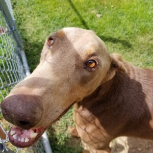UPDATE 10/17: A little background on Chief…He is still working on building his confidence and he will need an adopter who has the patience to ride it out with him. The reward will be great but right now he’s pretty scared of a lot of things. Chief lived outside until his family decided they were going to take him to the shelter. So his foster savior stepped in and brought him into his house where he has been living with 3 other Dobes and a small dog just fine. He adores the 4 year old granddaughter in the home but please note that she is dog/dobe savvy. He would likely not do well with boisterous, energetic children as loud noises can often startle him. He is also afraid of many everyday household things (vacuum, brooms, mops, leashes) and will need the patience to get used to these, though he is making progress in his foster home. He is currently afraid of the cat he used to live with so may be fine with them, though we don’t know how he’ll react once he builds his confidence.