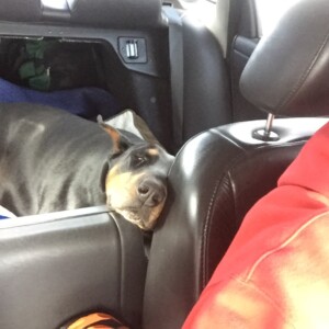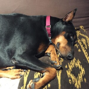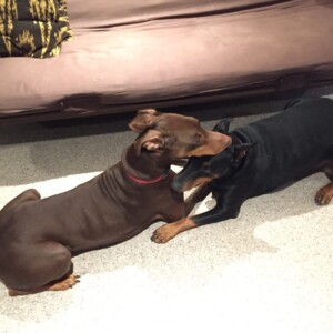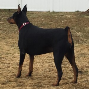 Whats better than a doberman’s love? How about a little extra doberman love! This is Nikki and she definitely has that little extra. She is a 3 year old love bug. Need an your face cleaned? She has you covered. Other dogs in your home need their ears cleaned? She has them covered also. Nikki would spend all day licking and loving on you, but every good relationship is give and take so she will let you rub her for half the day. You know, just so you don’t feel guilty!