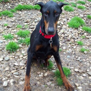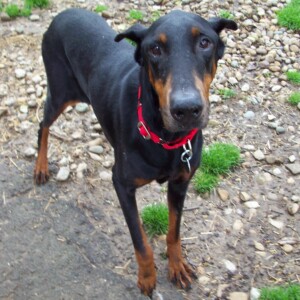 We believe Lydia to be about 6 years old. She is on the smaller side but an absolutely stunning dobie lady.
