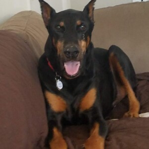 Snoopy is a handsome 10 year old dobie boy but don’t try to tell him he is a senior, this boy likes to run around and play in his yard! A typical dobie, he loves to be right with his people. So if you aren’t out in the yard with him he won’t want to stay out long.
