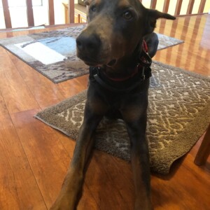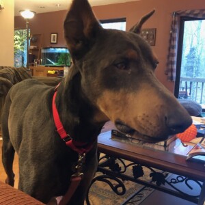 Perry is one sweet, beautiful blue boy! He is house trained and calm, cool and collected when left to “guard the house” for the day. He loves to go for walks and behaves quite well on a leash. He made a great jogging partner for those that want one. He listens to command even when excited and saying he is loyal to the human he loves most is an understatment.