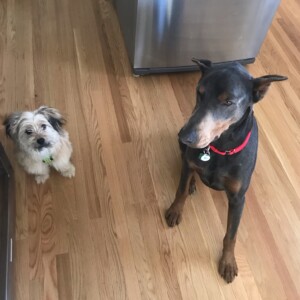 Perry knows: Sit, Come, Stay, Lay down, go to your bed and never counter surfs (He might sneak a peek but never goes for it!). He is well mannered with new people and during his humans dinner times.