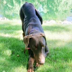 This is Blaze, an awesome dog and a very good boy! Blaze was unceremoniously dropped off at a shelter by a young couple who moved in together, paid big bucks for a dog, and then split up the whole family before the dog was one year old :-(