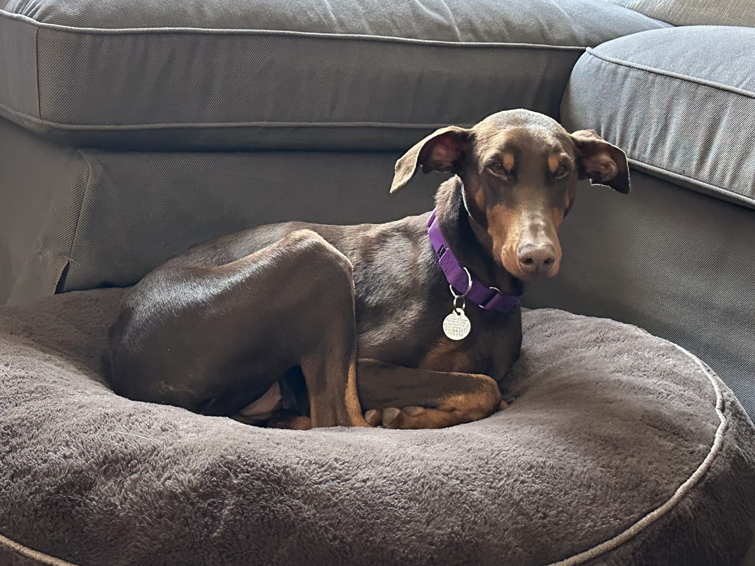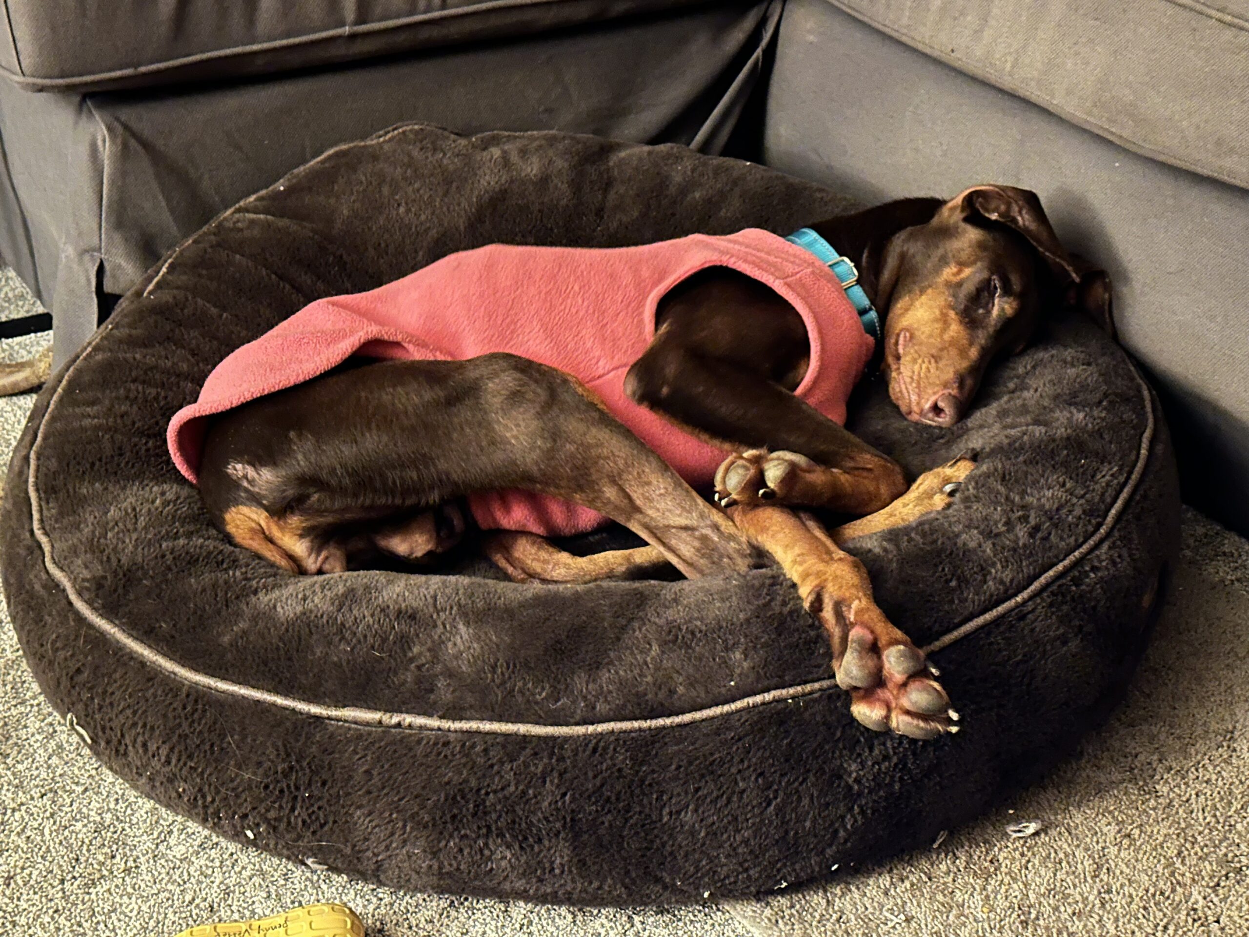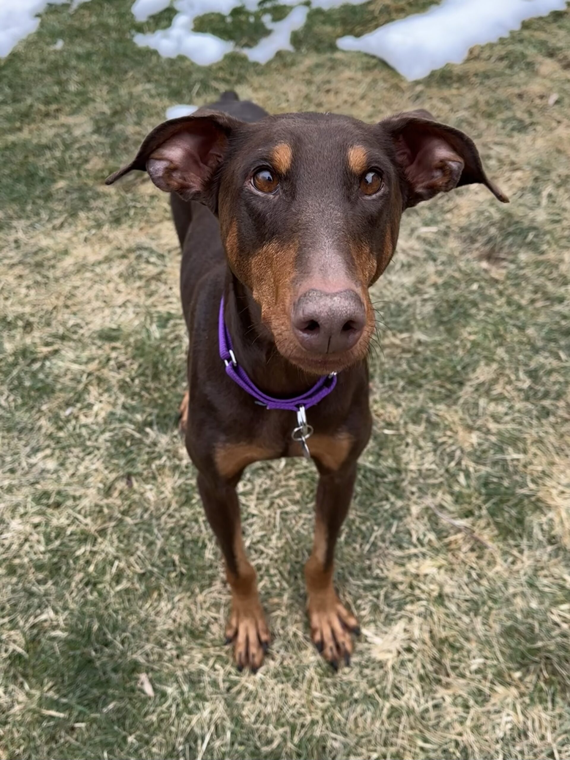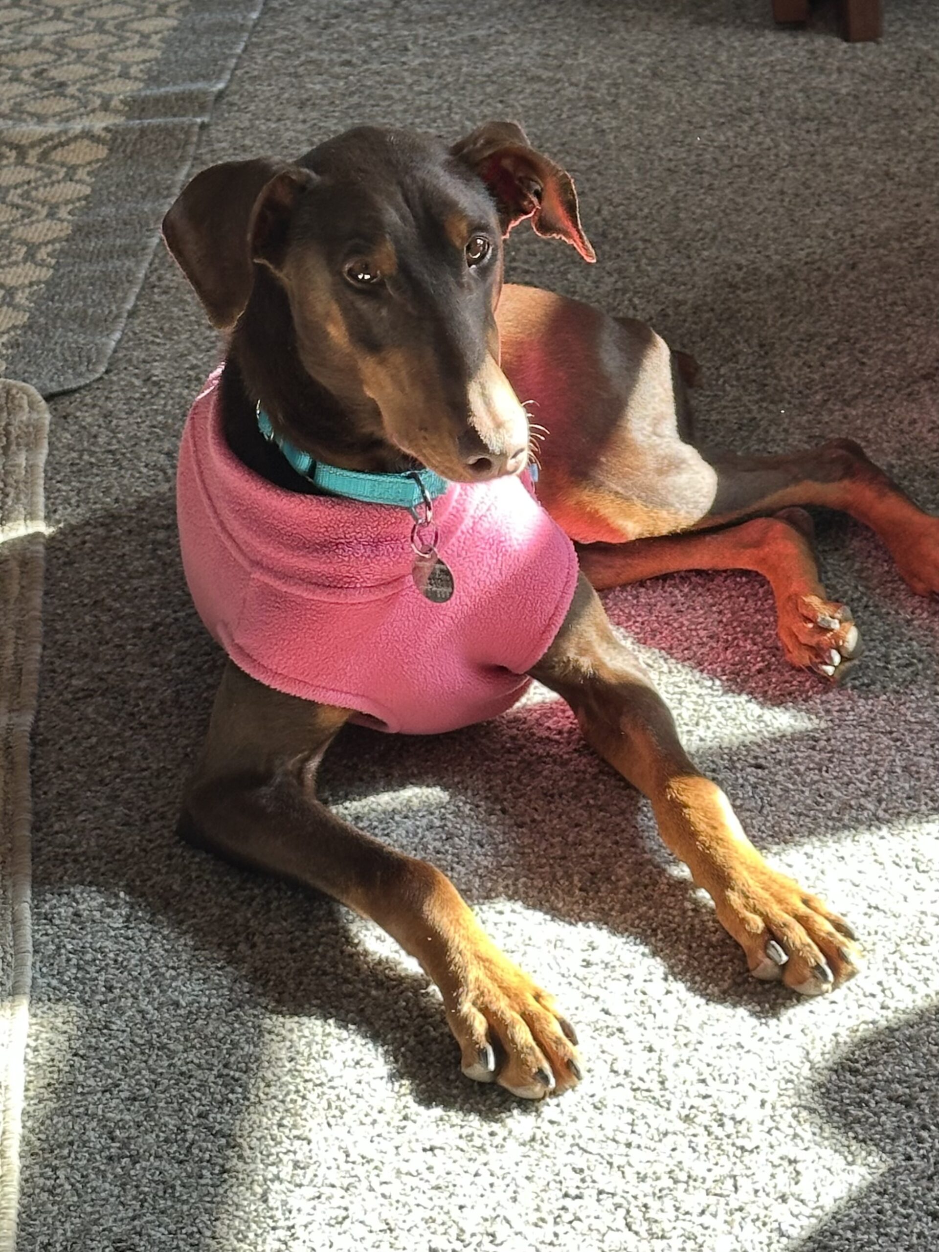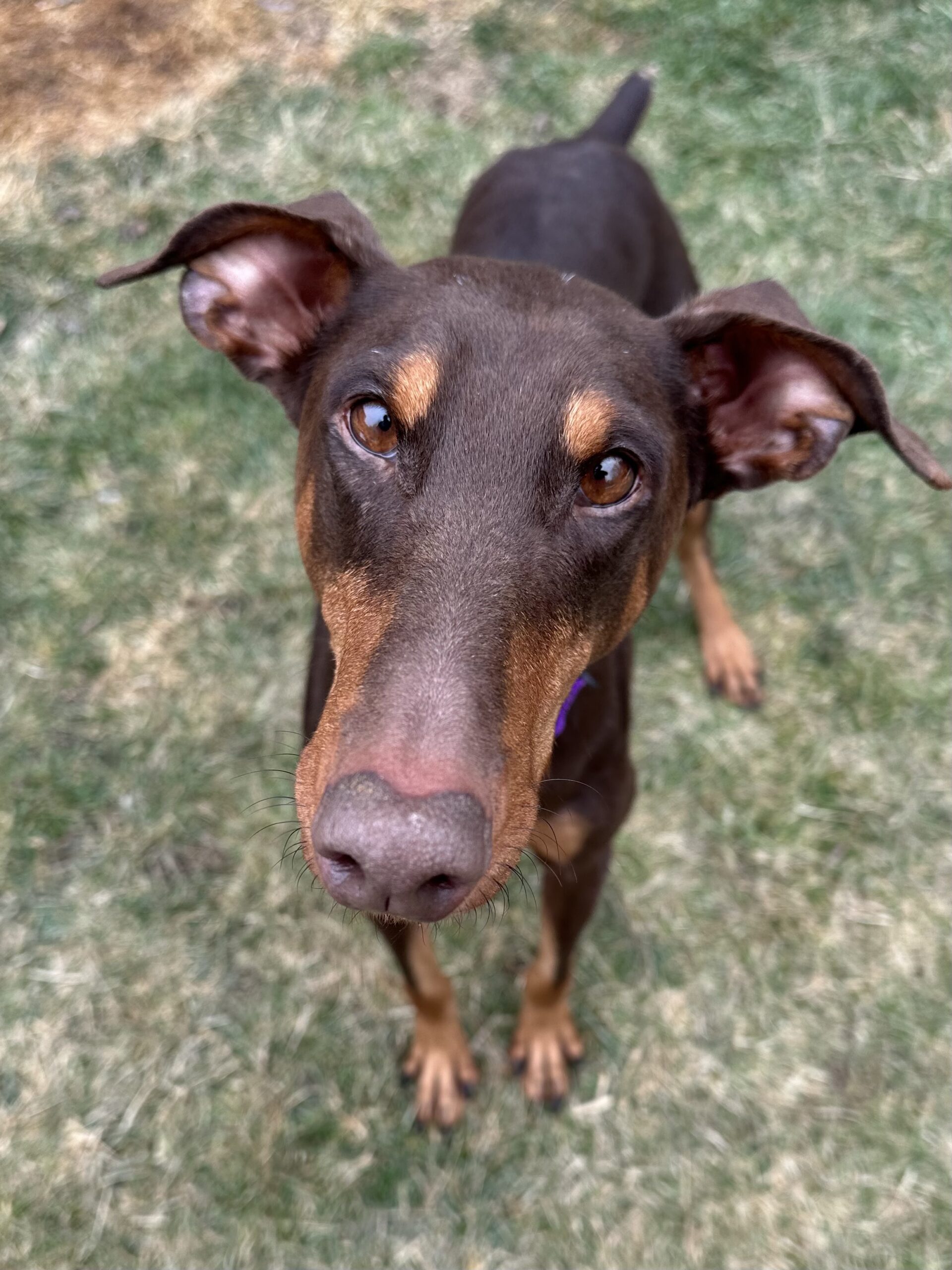 This petite red Doberman is the definition of HAPPY! Nub wiggles, smiles for days, and enough love to stick to you like… well… a suction cup 😄