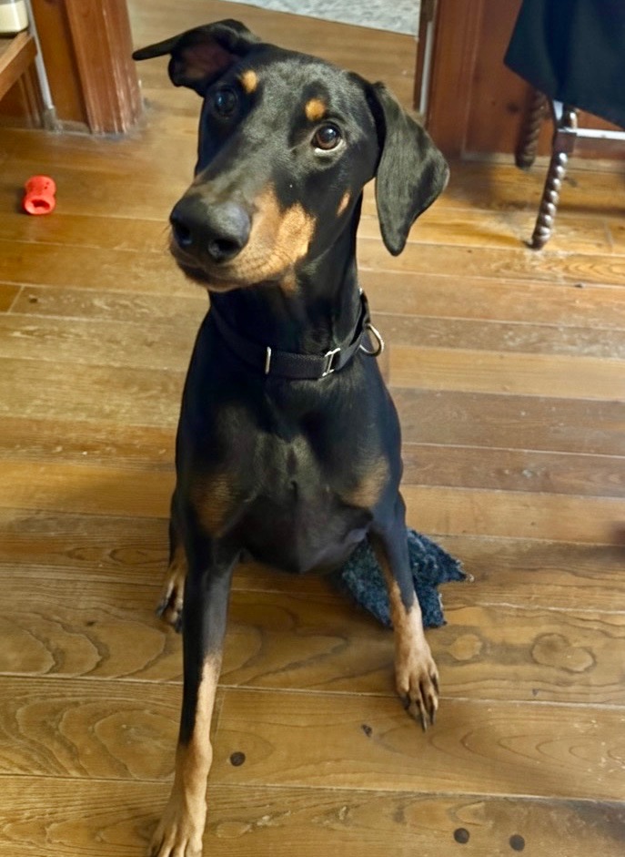 True to his Doberman roots, KC just wants to be by your side. He does well with other dogs, though he hasn’t been cat-tested yet, and will need a fully fenced yard.