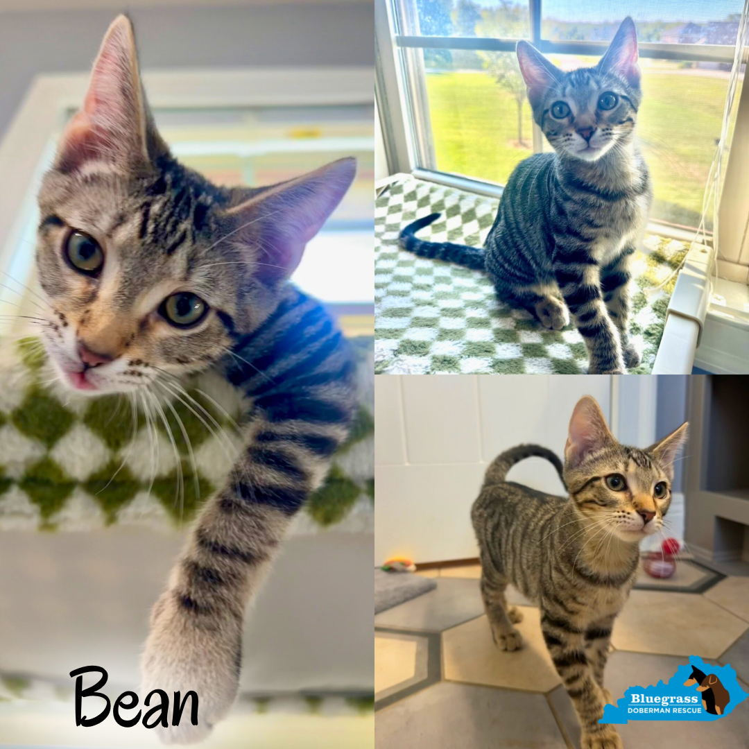 Bean is a 4-month-old kitten with a big heart and an even bigger personality. He’s the perfect balance of snuggly and playful! He is always eager to chase toys and explore, but will also curl up in your lap for cuddles.