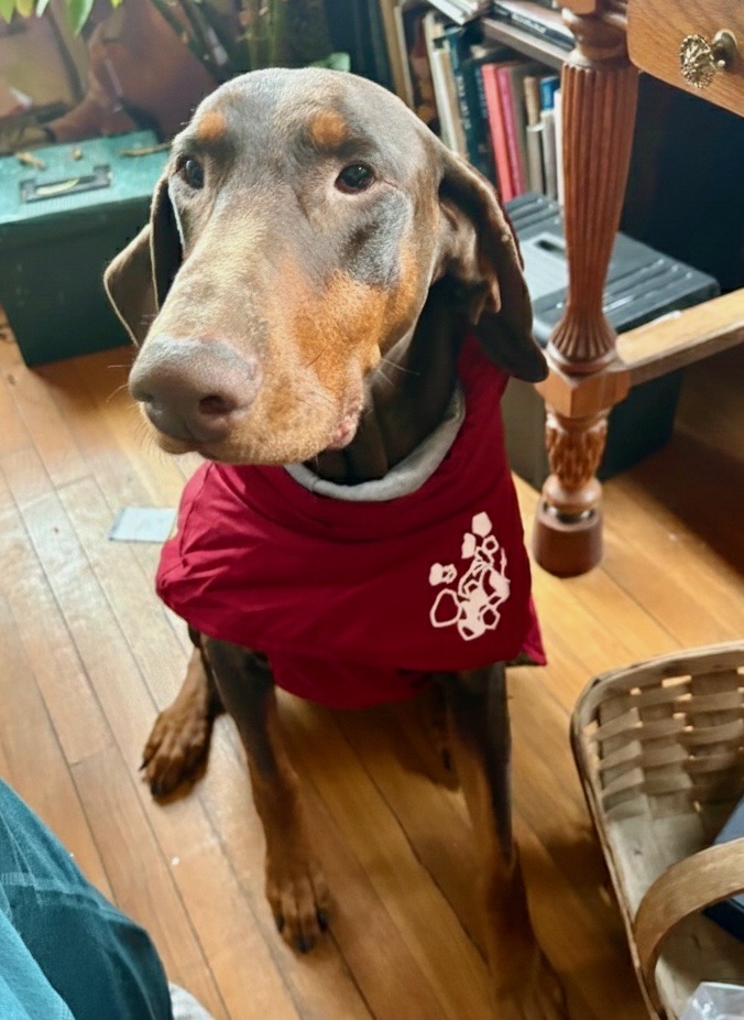 Chico loves running and playing with his Doberman foster brother, and with proper nutrition his coat is now silky soft, shiny, and beautiful. Because of his past, he can still be nervous if strangers reach for him too quickly—but he takes treats ever so gently and is learning how wonderful it is to be spoiled 🥹