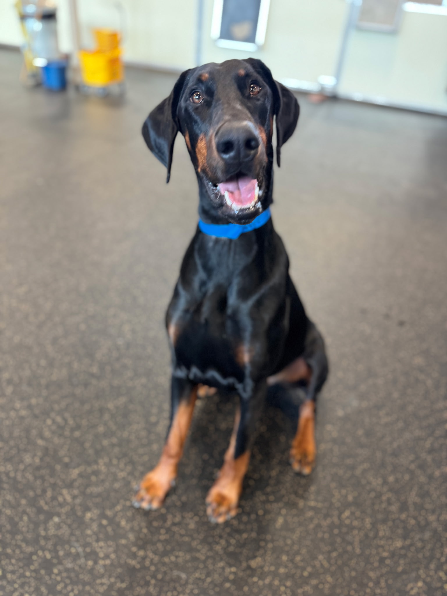 Copper is a typical 1½-year-old male Doberman—goofy, Velcro-attached, and full of puppy energy. He is both house-trained and crate-trained, and he’s a total love bug who thrives on being with his people. Copper enjoys the company of other dogs but will need a cat-free home. Due to his energy level, a physically fenced backyard is required in his forever home.