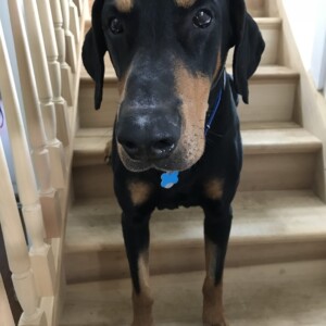 My name is Cyrus you can see that I’m a rather extra-large Doberman. If you want, you can just call me Big Guy Cy!