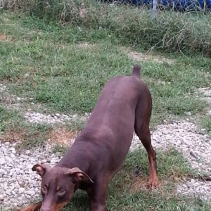 Davis is an adorable 3 year old natural ear red dobie boy. He was a stray so we do not know about his past but we know he loves life.