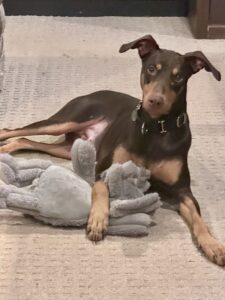 • A family willing to continue her training. She learns at her own pace, a bit slower than your typical Doberman.