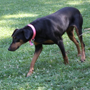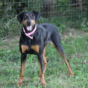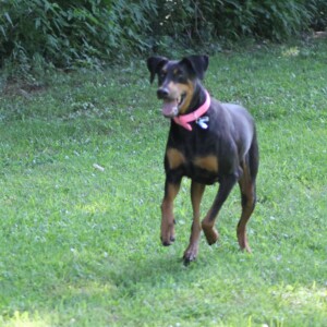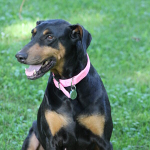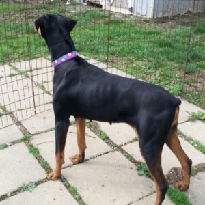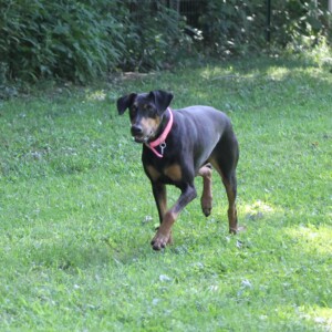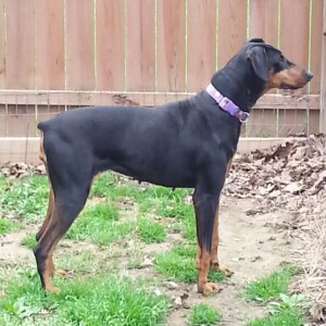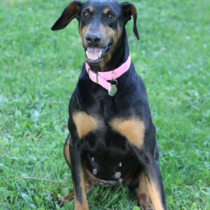 The most adorable part of London is she loves to give you a big dobie smile. Some people are taken back by this at first but once you realize she is only smiling then you find out her personality is to please her people.