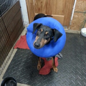 We are estimating London to be around 4 or 5 years old but she has tons of puppy energy. Probably happy to be somewhere safe and loved. London’s vet check was all good news, healthy girl that has a chance to become part of a real family. She’s learning how to play with a ball, slapping it to make it squeak.