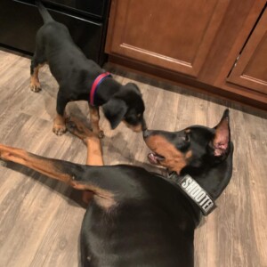 Look at this adorable all natural dobie girl! She is as sweet as she is cute. Mabel and her brother ended up in a shelter, he was adopted out but Mabel decided she would prefer to come to BDR and hang out for a little while.
