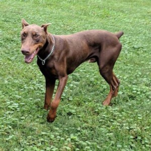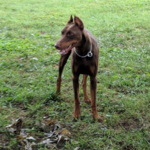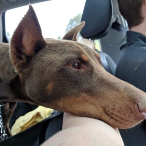 Meet Ozzy! This sweet and spunky 9 month old doberpup would be a happy addition to almost any home. He wakes up ready and willing to give sweet doberkisses. He knows the doberlean very well, when you rub his little head or scratch his ears he leans his head into your tummy with gratitude. From his ready to love disposition, you’d never know this happy, social and tender little boy was ever tied to a tree for 5 months of his life. We have found Ozzy to be receptive to any new medium to large sized dog with no fussiness. We have not small dog tested him. One of his favorite things is new friends and he doesn’t meet a stranger. He doesn’t say much with his voice but his sweet expressive face lets you know exactly what he is thinking and most of the time he has that tell-tale eager dobersmile. This polite little soul gives the right of way to our 2 year old male Doberman & plays with anyone he encounters. He does appear to take social queues pretty well so when they are done and a pup tells him to back off then he does. Ozzy has not been tested with soft toys but he loves bones and kong type toys. He sleeps in a crate because he is still learning bathroom etiquette but he is a quick study. He isn’t excited about the crate but doesn’t complain about being in one. We have not kid or cat tested him. If you’re looking for a spot of sunshine in your day then you should consider adding this lovely little non-human person to your pack!