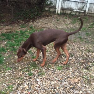 Pebbles is a little over a year old and an all natural red girl. She came to us after a Good Samaritan got her from a not so great situation but couldn’t keep her. She’s now in foster where she gets along with all the dogs she’s met so far and ignores the kitties. She’s super sweet and loves everyone she meets, just a happy girl. She loves toys and you can see in her pictures how she loves to carry them around with her. As with all of our dogs, she is up to date on vaccines, spayed and microchipped.